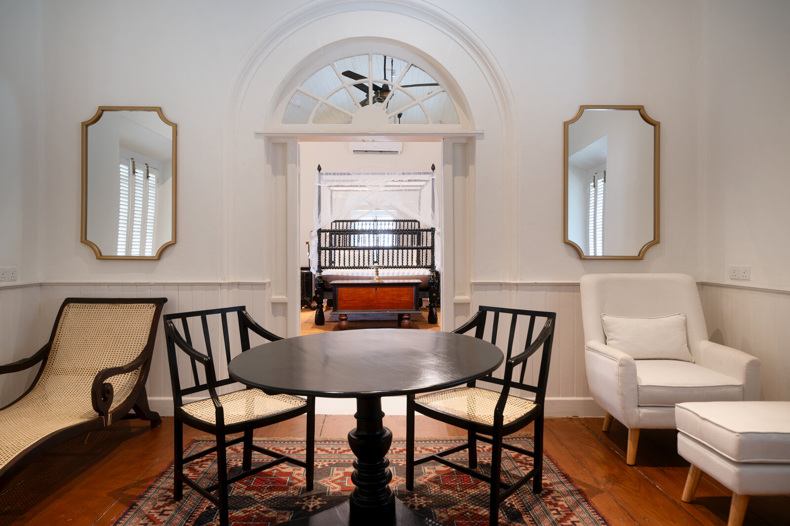 The largest and grandest suite in the mansion, this space was for a while the apartments of the Count de Mauny, while he helped increase the architectural diversity of the Fort. Our very walls stand testament to his talent and imagination.